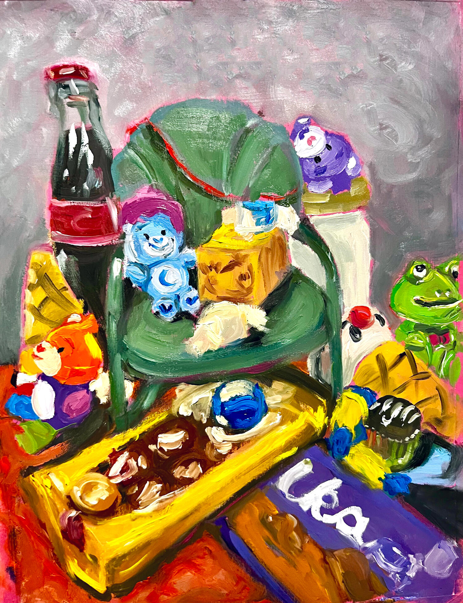 smoked salmon, 5.5" x 10.5", oil on unstretched canvas, 2024